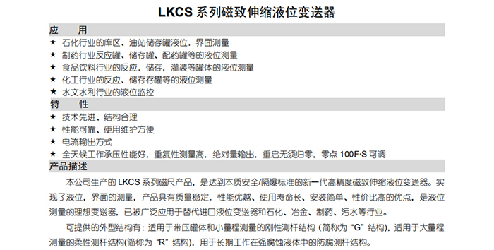 LKCS系列磁致伸縮液位變送器